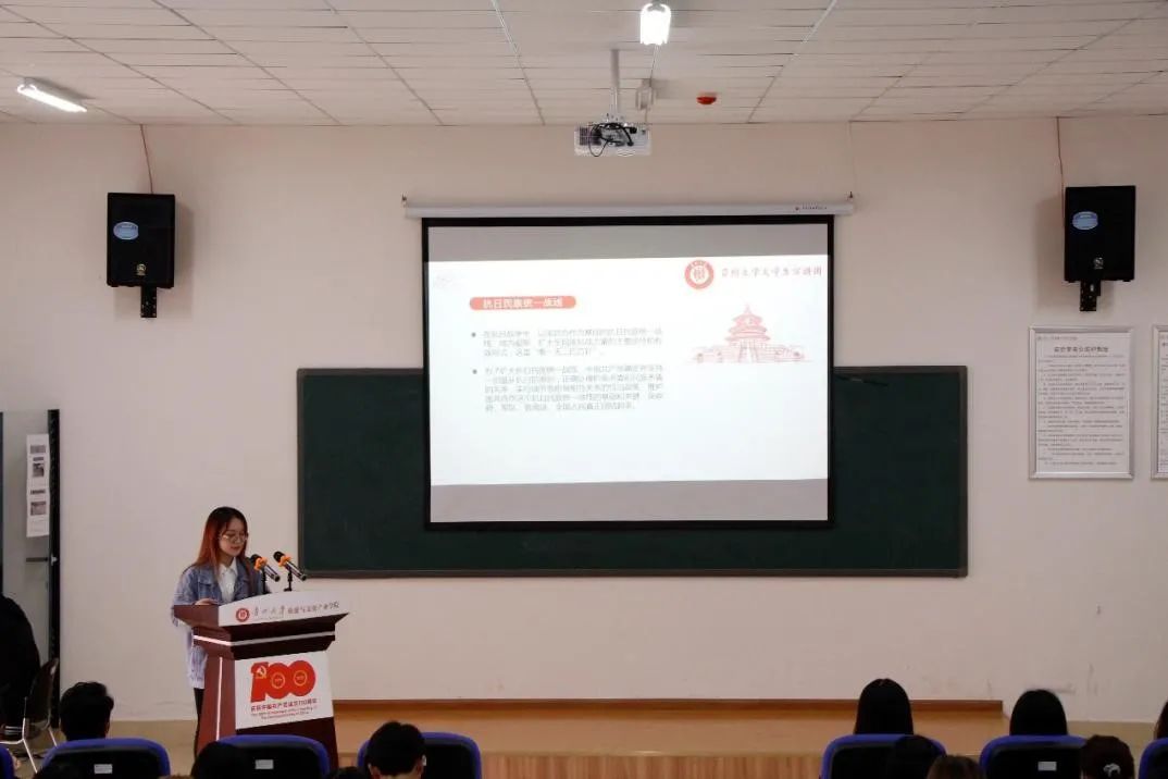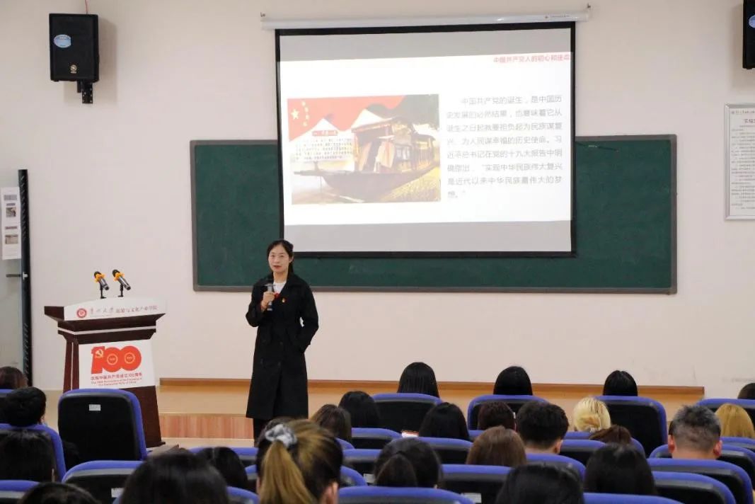 为引导青年学子深入学习党史,勇担青年责任,5月28日中午贵州大学青年讲师团和大学生宣讲团到我院开展“百场宣讲进支部”活动,此次活动以“光辉历程”为主题,由青年讲师团易丹妮、大学生宣讲团李诗悦主持宣讲。