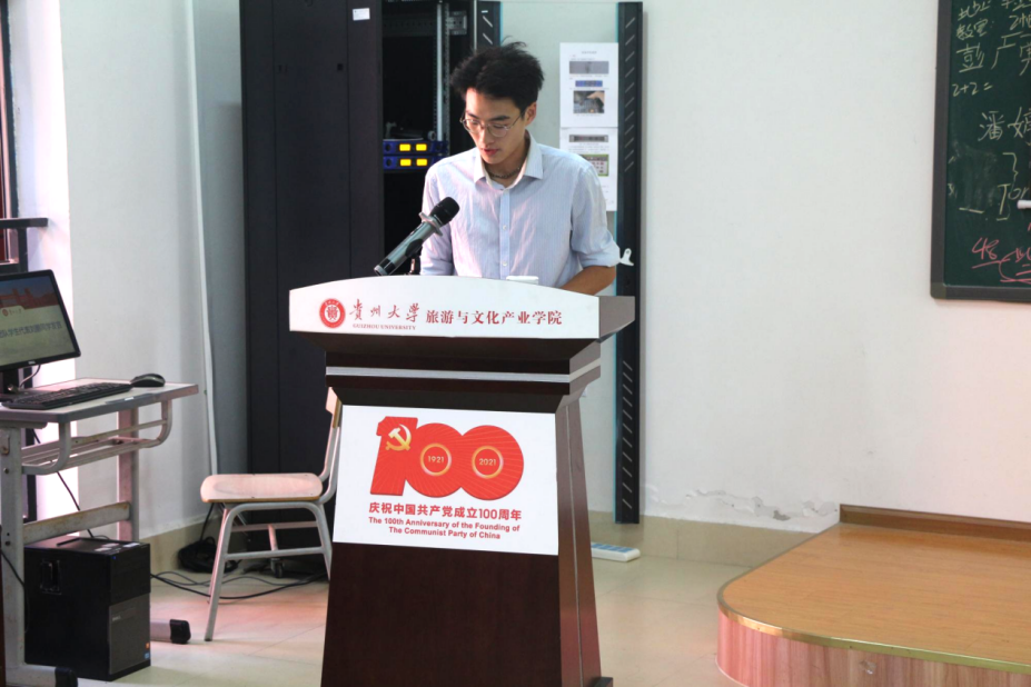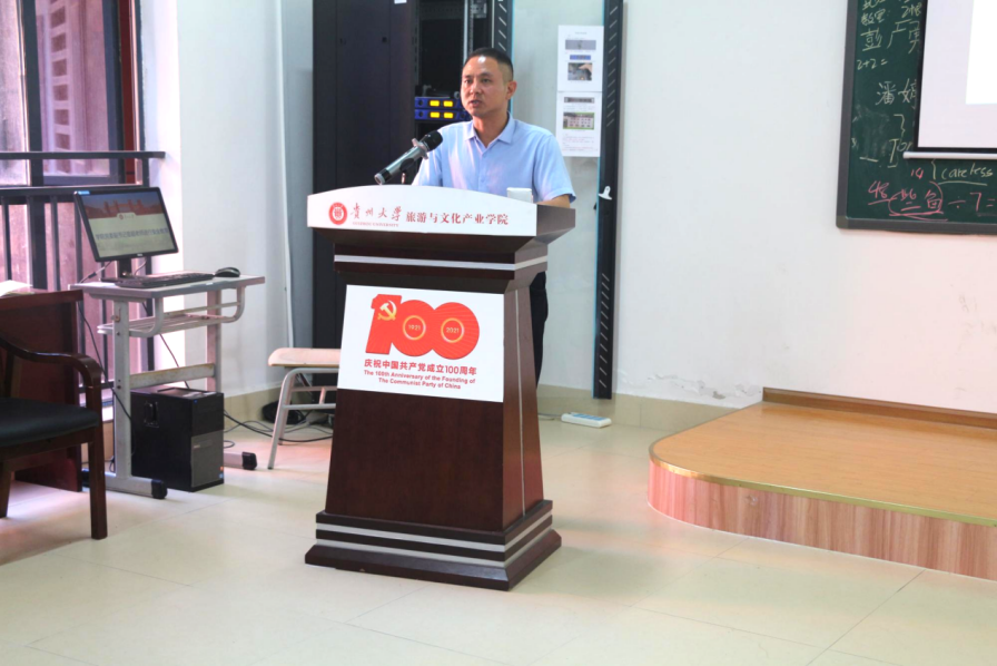 社会实践队学生代表刘鹏同学发言,他表示身为青年学生我们将积极响应习近平总书记号召、到党和人民需要的地方去磨砺意志的决心,将珍惜此次社会实践活动的锻炼机会,把不怕困难、艰苦奋斗的精神贯穿实践过程中,将与学院10支队伍师生一起奔赴省内各地深入田间地头,走进乡村街道,普及知识、传播文明,发挥专业优势开展调查研究、建言献策,成为助力贵州乡村旅游和乡村振兴的感受者、宣传员和实践者,在实践中锻炼成长,在奉献青春中成才,以实际行动迎接党的二十大胜利召开。
