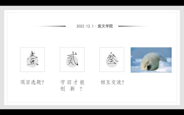 会议中,金朝同学结合自身实践及获奖经验,从“挑战杯”的红色专项赛道出发向同学们提出了三点建议。首先,在项目选题过程中,她鼓励同学们积极向指导老师请教,老师们丰富的教学经验会给予同学们宝贵的建议,同时题目应创造性地结合党的二十大精神,从而选择出更具有实用性、典型性的项目命题;其次,金朝同学提醒同学们不要盲目地追求创新,从而丢弃掉经典的理论方法,在项目实践过程中应牢记“守旧”才能创新的理念,做到理论与实践相结合,尝试多学科交流与融合,体现出时代性与新青年视角的结合。会议最后,金朝同学强调,做调查研究要秉持初心,从一而终,项目结果不仅要呈现出以小见大的深刻变化,还应达到能调动情感、引发共鸣的持久效果。