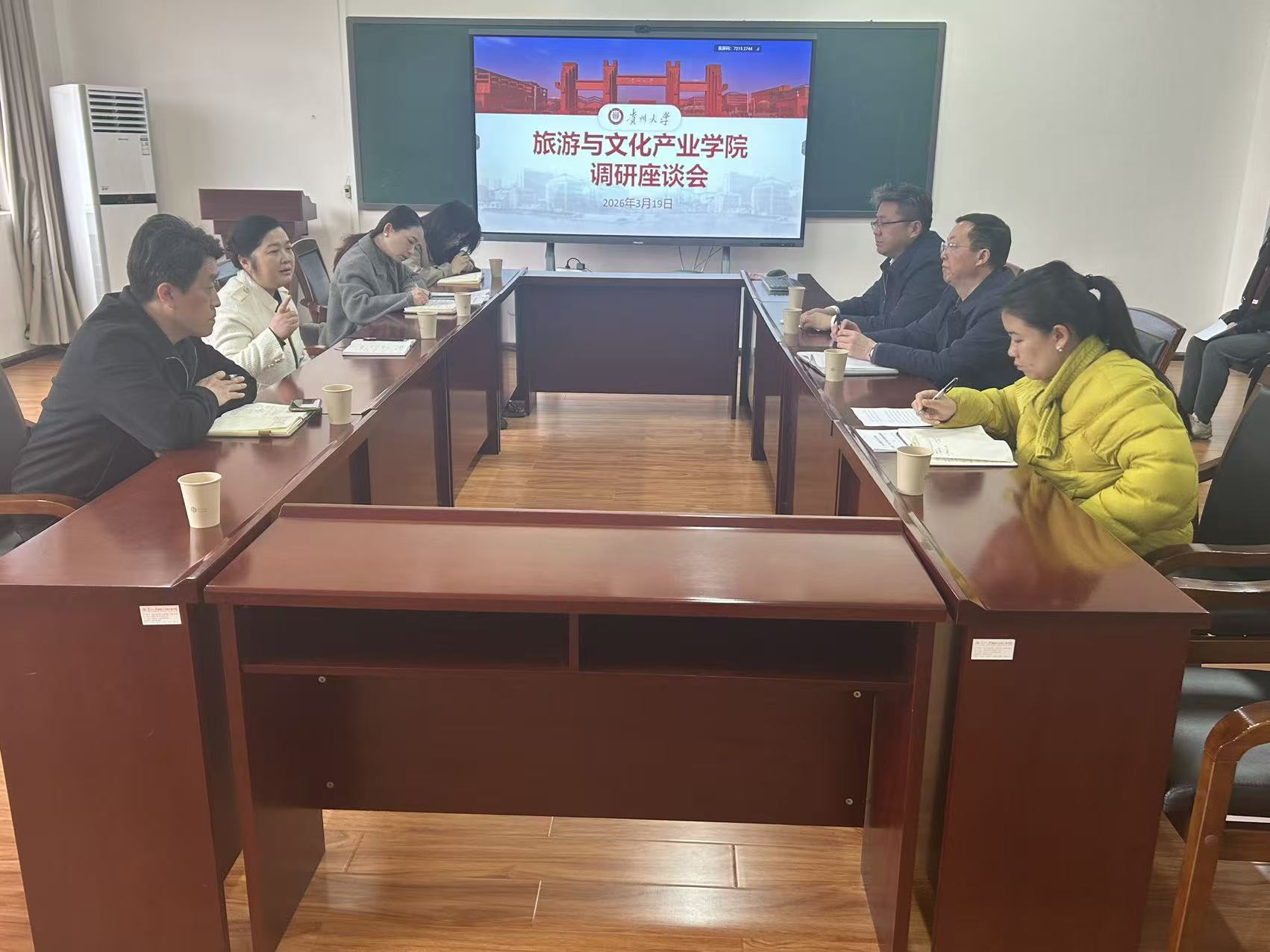 2026年3月19日上午,校党委书记杨未带队到旅游与文化产业学院调研指导工作,深入了解学院近期工作推进情况,重点围绕树立和践行正确政绩观学习教育、学院班子建设、学科发展、国家社科基金申报、“一站式”学生社区等工作展开调研指导。